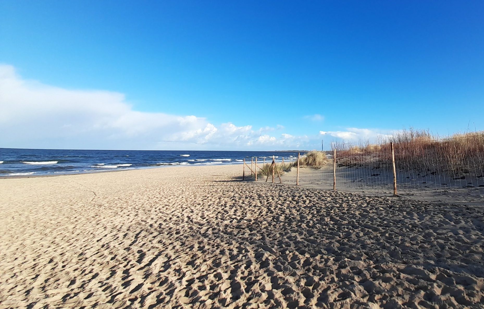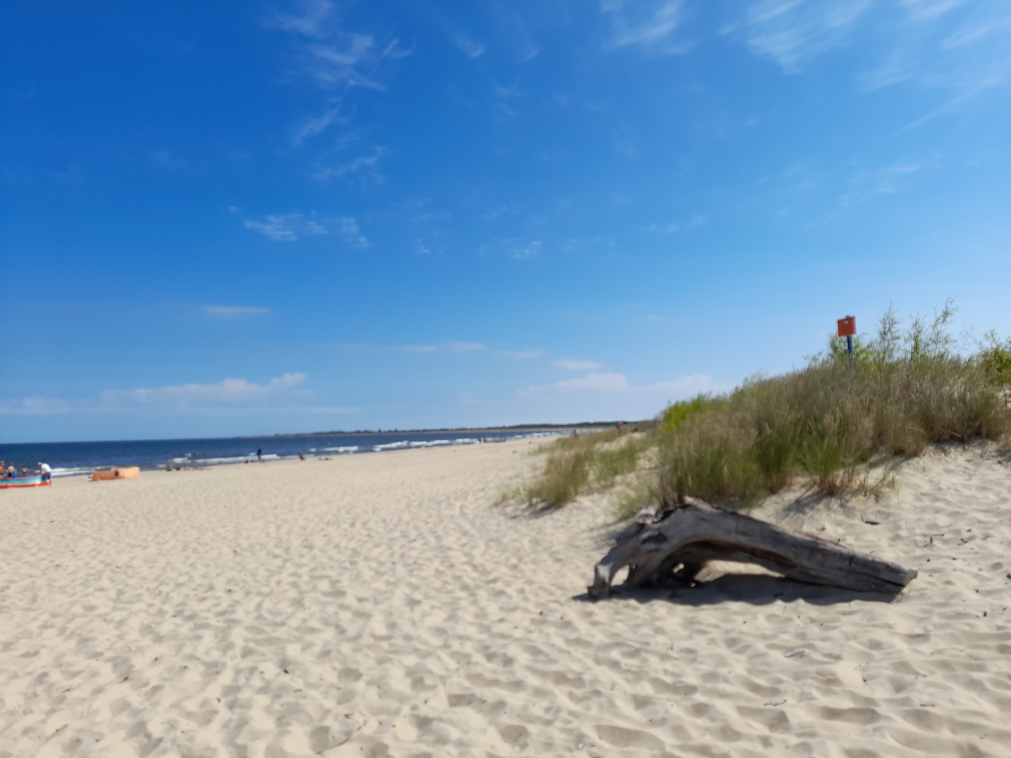 Piaszczysta, szeroka plaża rozciagająca sią na 11km